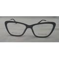 BLACK COLOR CAT- EYE SHAPE FRAME.THE TEMPLES ARE BLACK ,TRANSITIONING TO A THIN GOLD COLORED METAL NEAR THE HINGE.